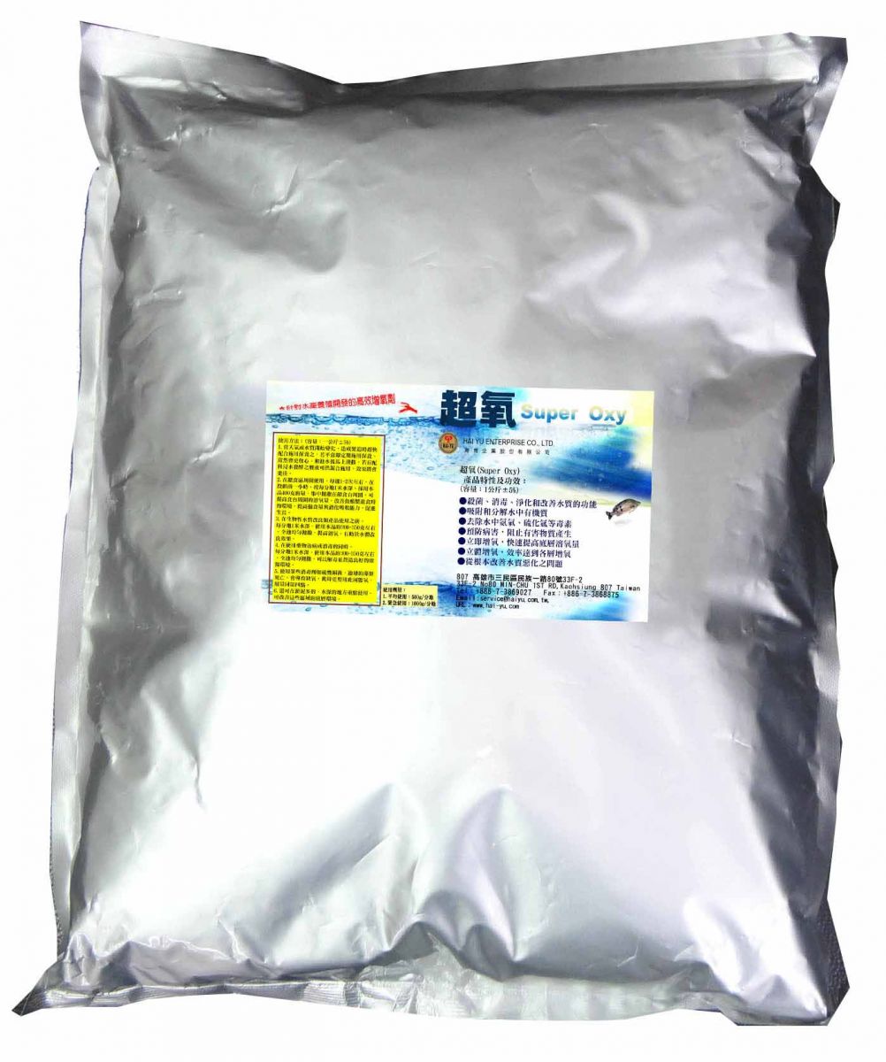 係專門針對水產養殖開發的高效增氧劑,主要含過氧系碳酸塩(蘇打粉與含氧物的結合物),催化物(促進產生水溶性氧)及水質穩